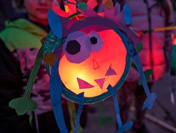 … treffen wir uns zum jährlichen Laternenzug an der Tesche! Nach der herzlichen Begrüßung durch Frau Enders ging es los: Die Kapelle stimmte „St. Martin, St. Martin …“ an, und laut schallte es durch die Dämmerung. Die wunderschön gebastelten Laternen strahlten mit den Kindern um die Wette. Stolz führten die