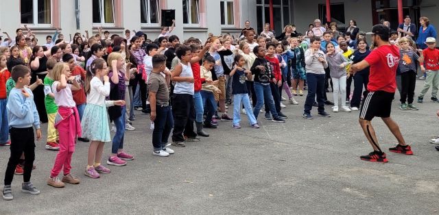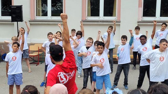 „Ich bin stark, ich bin wichtig, ich bin richtig wie ich bin!“ – Zu diesem Motto-Song überraschten die Klassen 4 am letzten Schultag mit einer mega-starken Abschiedsvorstellung auf dem Schulhof! Murat Güclü von www.starke-erlebnisse.de hatte mit beiden Klassen eine beeindruckende, professionelle Hip-Hop-Medley-Performance einstudiert. Danach zeigten die Kinder mit ihrer Musiklehrerin Frau Krämer in einer Beethoven-Body-Percussion-Show, dass sie sich auch mit klassischer Musik gut auskennen.