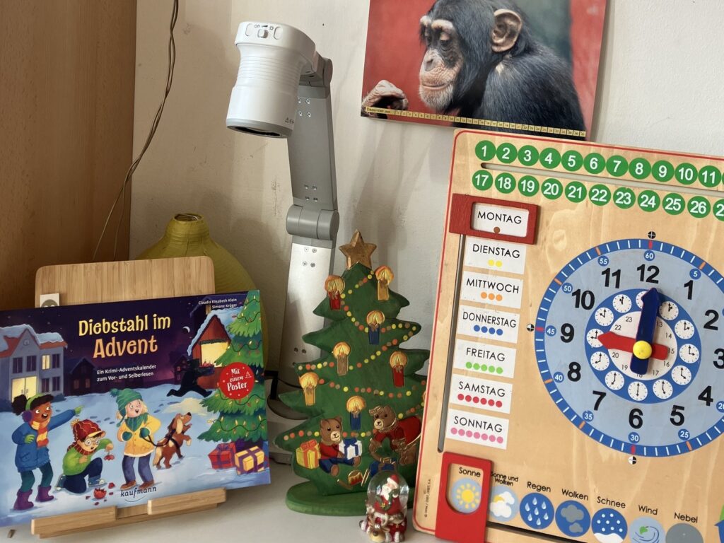 Neben den festlichen Aktivitäten kam auch das Lernen nicht zu kurz. Es wurde gelesen, geschrieben, gerechnet und konzentriert gearbeitet – oft eingebettet in adventliche Themen. Vorlesezeiten und ruhige Arbeitsphasen boten einen angenehmen Ausgleich zum kreativen Trubel.