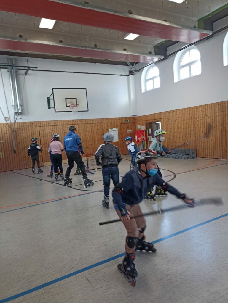 Im kleinen Hockeyspiel wurde das Können auf die Probe gestellt bei den vierten Klassen. Es wurden Ängste überwunden, neue Herausforderungen angenommen und jede Menge Kampfgeist gezeigt. Auf den Po gefallen ist man nämlich auch. Und die Kids sind immer wieder aufgestanden, weil sie gemerkt haben: Inlineskates fahren macht jede Menge Spaß !